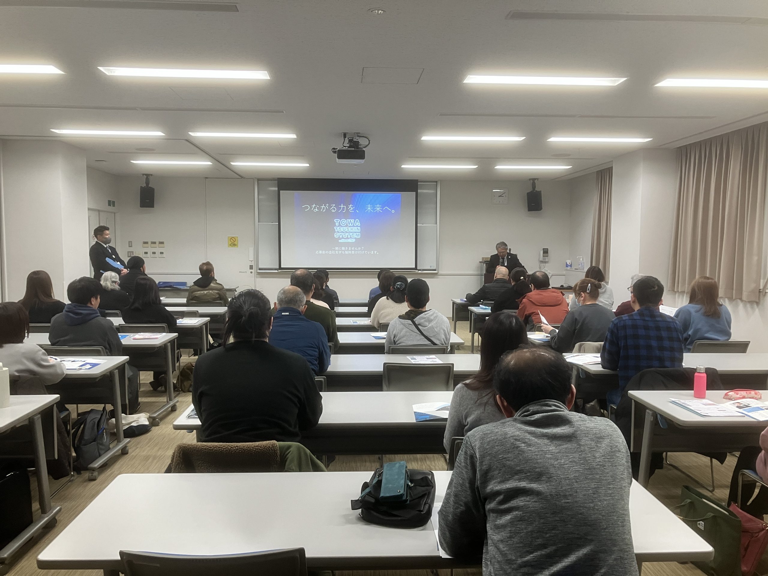 説明後には社長より、求職者の皆さまへ向けて「未経験からでも成長できる環境づくり」や「地域に根ざした事業への想い」をお話しし、参加者の皆さまも熱心に耳を傾けてくださいました。